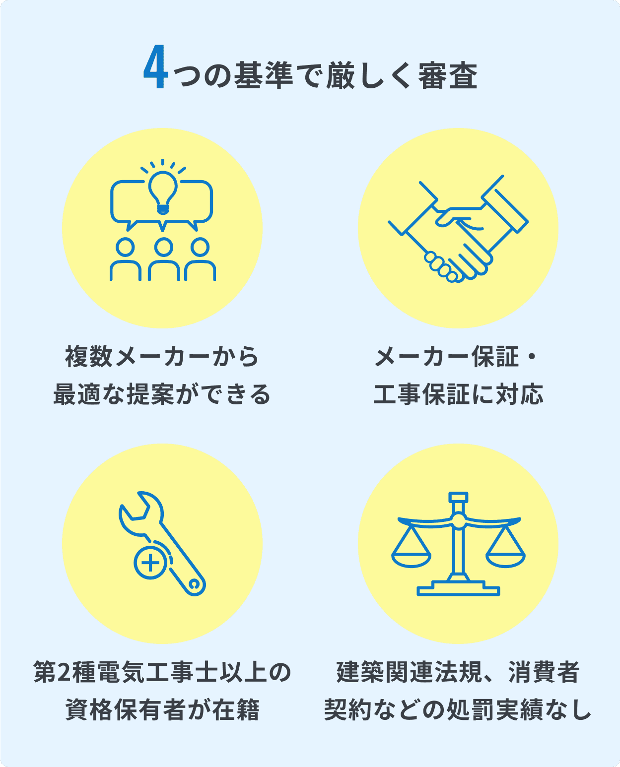 一般的な比較サイトのような、紹介手数料さえ貰えれば良いというスタンスではなく、本当に安心してご紹介できる企業のみ見積もりの対象としております。
